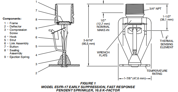 • Rapid response: In the early stage of a fire, the rapid response element of the ESFR sprinkler head acts promptly.