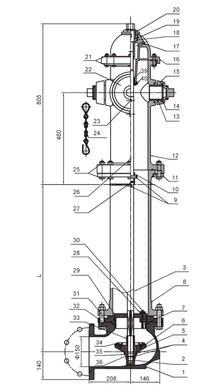 | Nozzles | 1×4.5" (4NH thread) pumper nozzle; 2×2.5" (7.5NH thread) hose nozzles |
